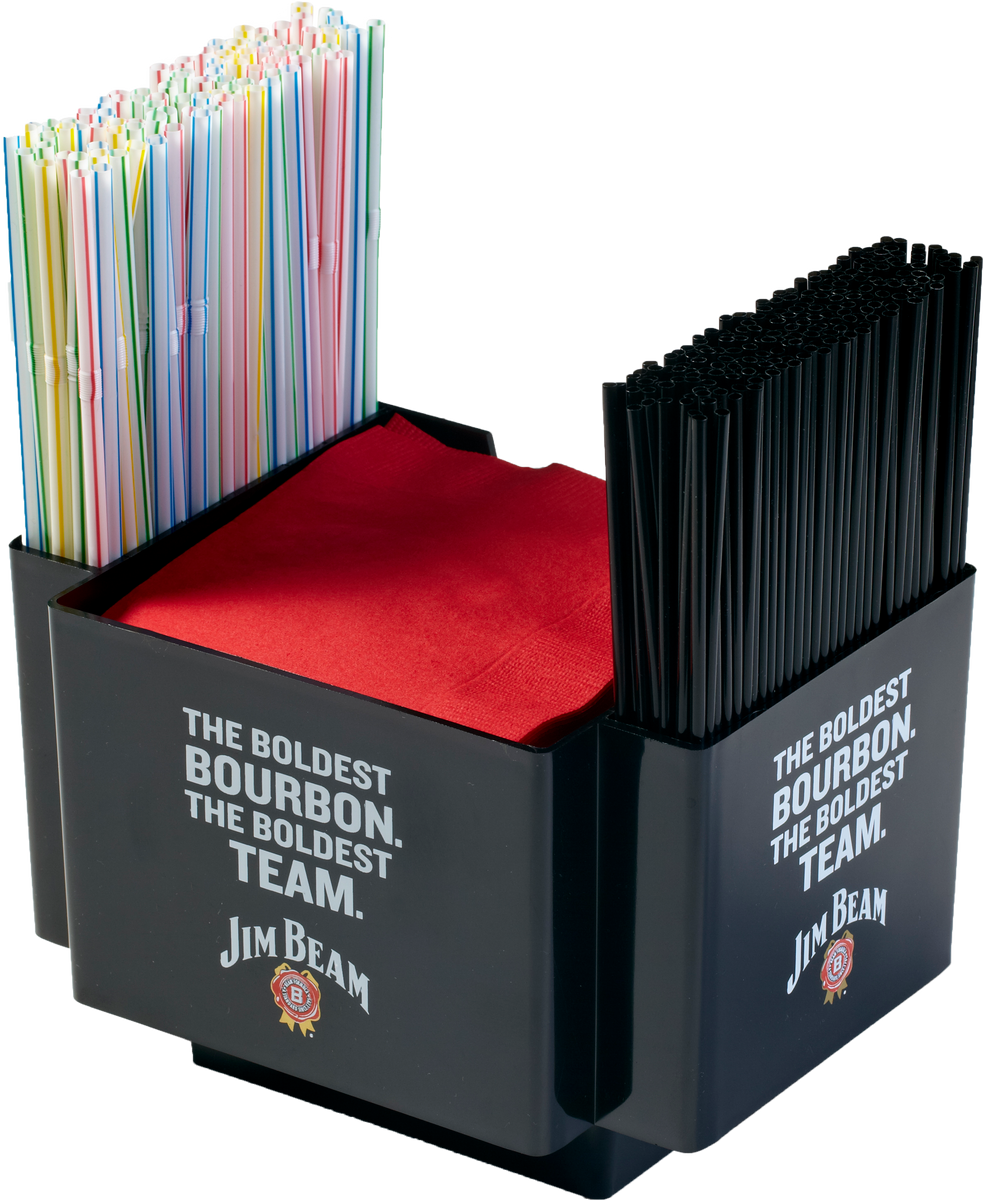 3 Sided Napkin Holder with 2 Full Pockets. Price includes THREE big imprint areas. Each side is imprinted with the same imprint so your imprint gets maximum exposure. Made in USA of BPA free, Food Grade Polystyrene Plastic.